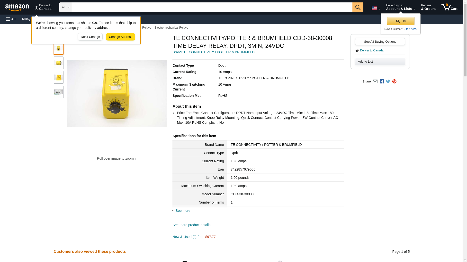 TE Connectivity / P&B Brand CDD-38-30008 Time Delay Relays