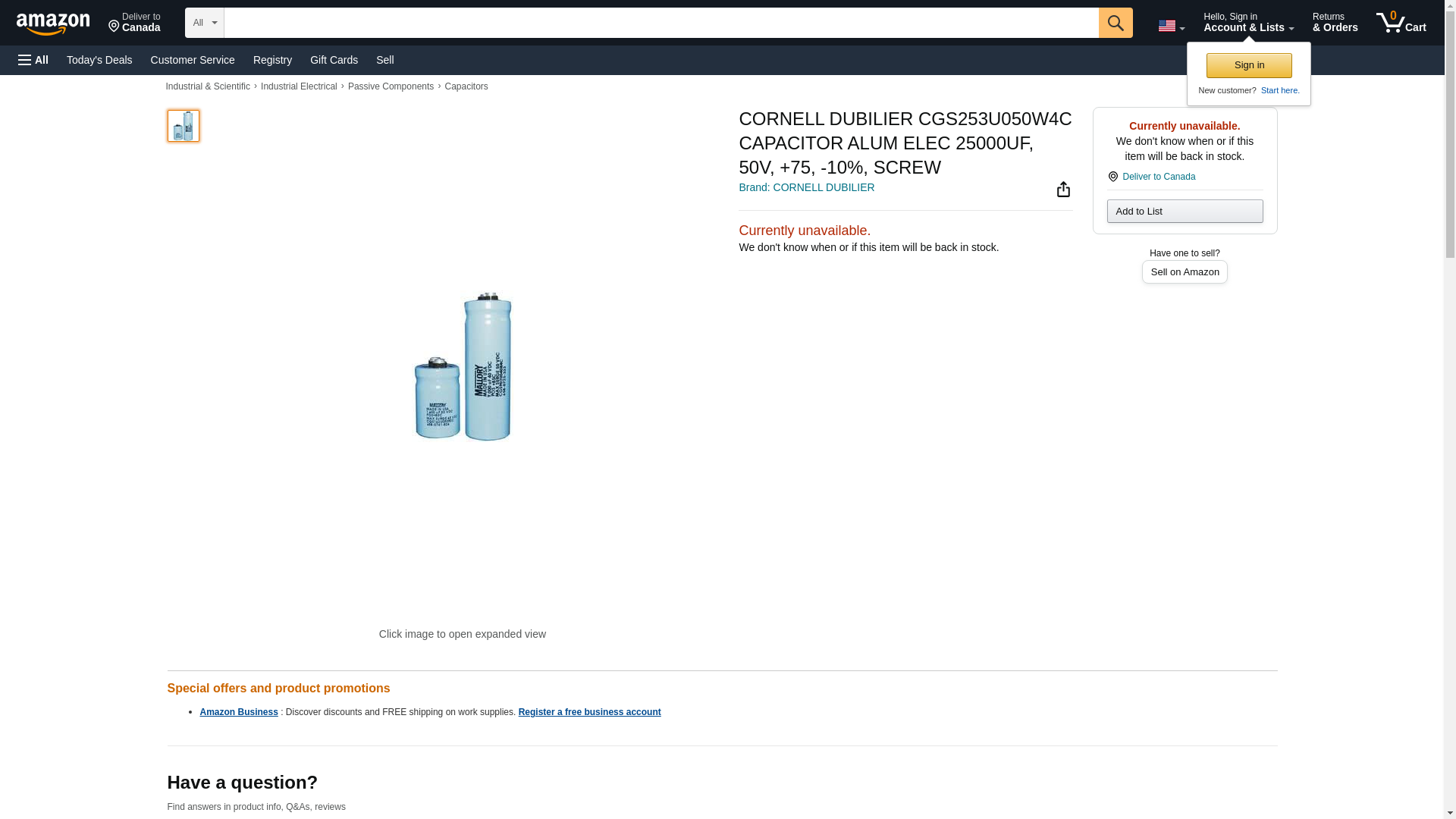 "Cornell-Dubilier CGS253U050W4C Capacitor; Al; 25000uF; High Cap. ComputerGrade; Screw; -10%, +75%; 50VDC; 65SVDC"