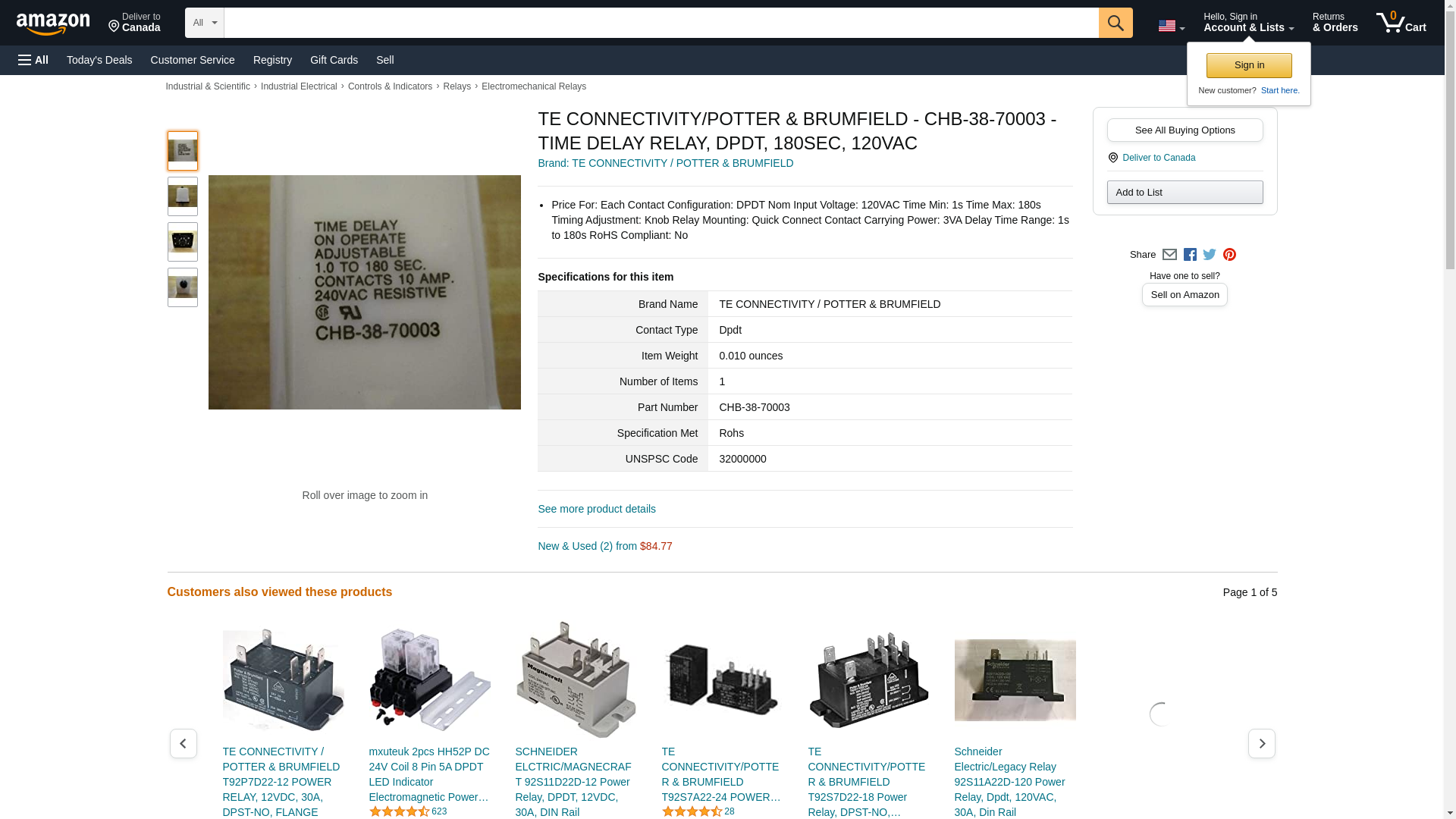 | Feature | Price For: Each Contact Configuration: DPDT Nom Input Voltage: 120VAC Time Min: 1s Time Max: 180s Timing Adjustment: Knob Relay Mounting: Quick Connect Contact Carrying Power: 3VA Delay Time Range: 1s to 180s RoHS Compliant: No |