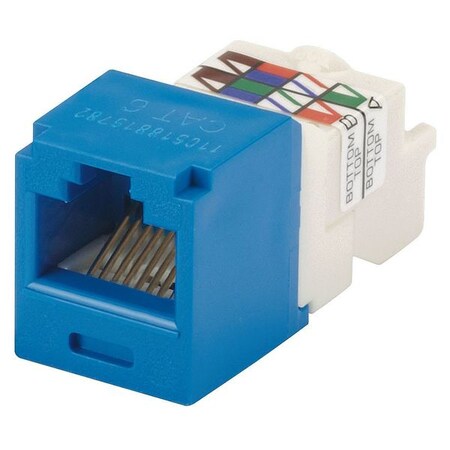 <br /><br /> Item: Modular Jack<br /> Series: Mini Com<br /> Cable Type: Category 6<br /> Color: Blue<br /> Material: Plastic<br /> For Use With: Mini-Com Faceplate and Panels<br /> Termination Type: Punch-Down<br /> Width: 0.624"<br /> Height: 0.712"<br /> Depth: 1.432"<br /> Number of Ports: 1<br />