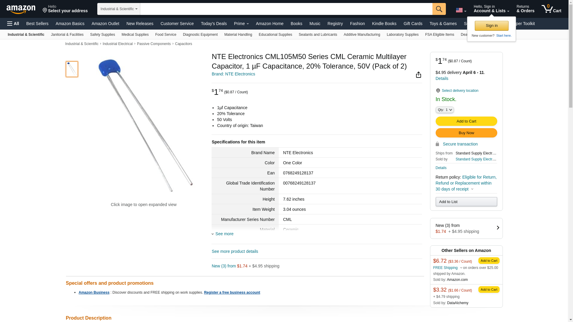 | ntepartsdirect | CML105M50 | 1 | -2 | 1 | 1 @ $1.59, 10 @ $1.43, 50 @ $1.35, 100 @ $1.27 |