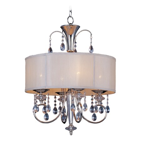 Polished Nickel finish with Clear shades Measures 22 inches wide, 28 inches high, and 22 inches deep Uses (4) 60W CA Incandescent bulb(s) (not included)