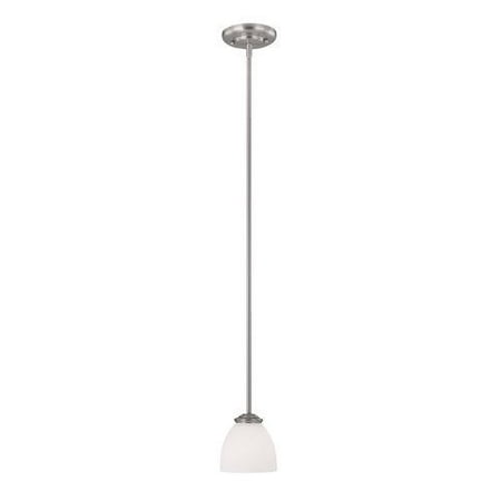 45 in. 100W 1-Light Mini Pendant in Matte Nickel with Soft White Glass Shade
