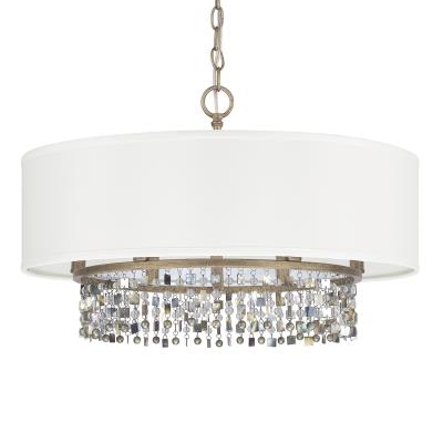 Capital Lighting 4216BG-544-CP Harper Convertible White Fabric Drum Pendant/Semi Flush with Shell, 6-Light 360 Total Watts, 16" H x 24" W, Brushed Gold