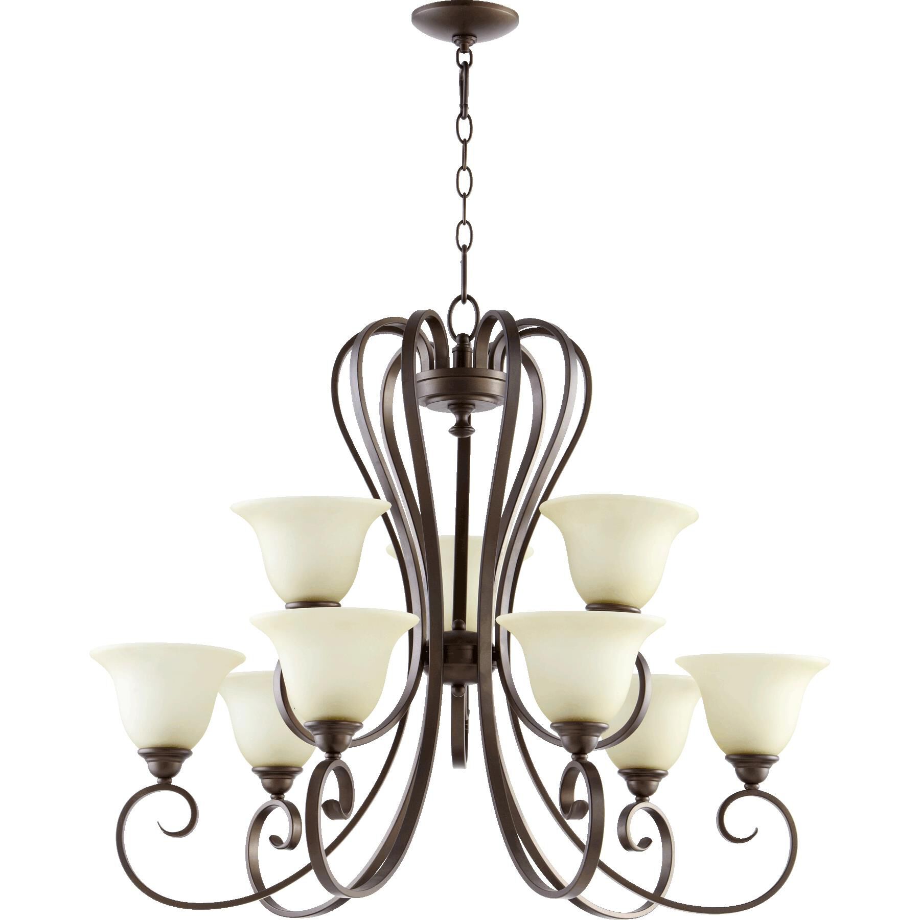 Quorum 6053-9-86 Celesta - Nine Light 2-Tier Chandelier, Oiled Bronze Finish with Amber Scavo Glass