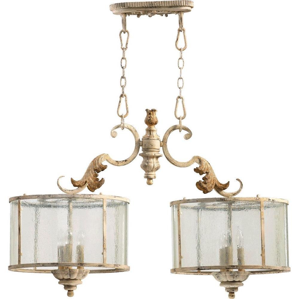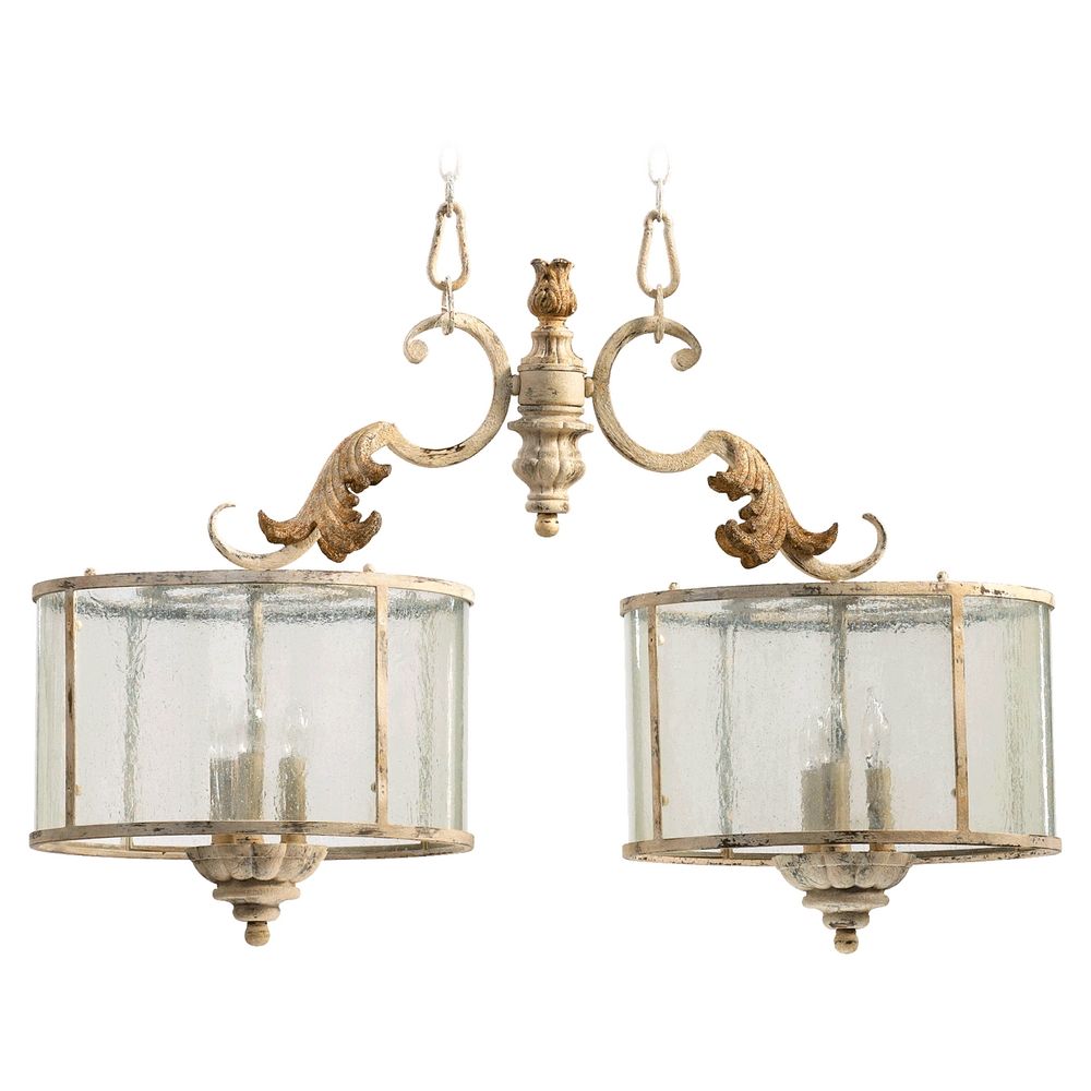 Quorum International 6537-6-70 Island Pendants with Clear Seeded Glass Shades, Antique Distressed White