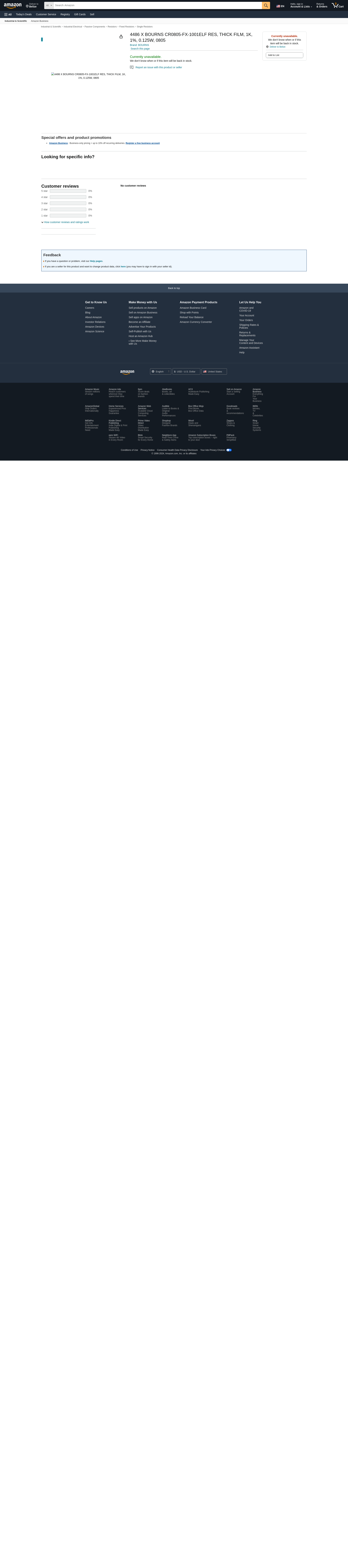 4486 X BOURNS CR0805-FX-1001ELF RES, THICK FILM, 1K, 1%, 0.125W, 0805