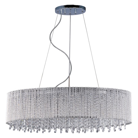 ET2 E23144-10PC Spiral Curled Metal Tubing with K9 Crystal Oval Chandelier, 6-Light 240 Watts, 9" H x 12" W x 32" L, Polished Chrome
