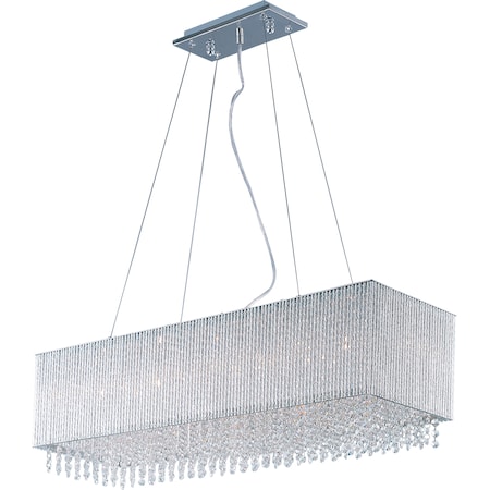 ET2 E23146-10PC Spiral Curled Metal Tubing with K9 Crystal Linear Pendant Ceiling Lighting, 9-Light 360 Watts, 10"H x 11"W x 35"L, Polished Chrome