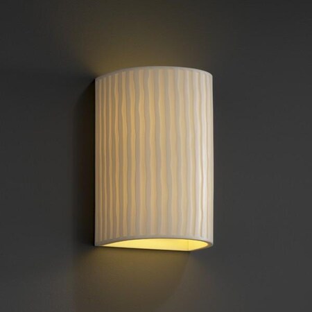 Justice Design Group PNA-1265 Medium Cylinder Open Top and Bottom Wall Sconce from the Porcelina Collection The Porcelina™ was created to offer large-scale lighting fixtures that coordinate with the extensive Limoges Collection™ of translucent porcelain. The sculpted surfaces of these faux porcelain shades capture the classic, yet contemporary, designs of the delicate "impressions" of the Limoges Collection™. From an elegant lamp atop a contemporary end table to a dramatic sconce illuminating a formal entryway, Justice Design offers a wide array of lighting solutions for residential and commercial settings. Create a mood, complement a theme, or simply add the perfect accent with a Justice Design decorative lighting fixture. Porcelina Collection Medium Cylinder - Open Top & Bottom Faux Porcelain Resin Shade Material Requires (2) 40W equivalent Torpedo Type B-13 Max UL Listed, Suitable for Damp Locations Dimensions: 12.5" H x 7.75" W x 6 1/4 " Proj. Mounting Center: 5" M.C.