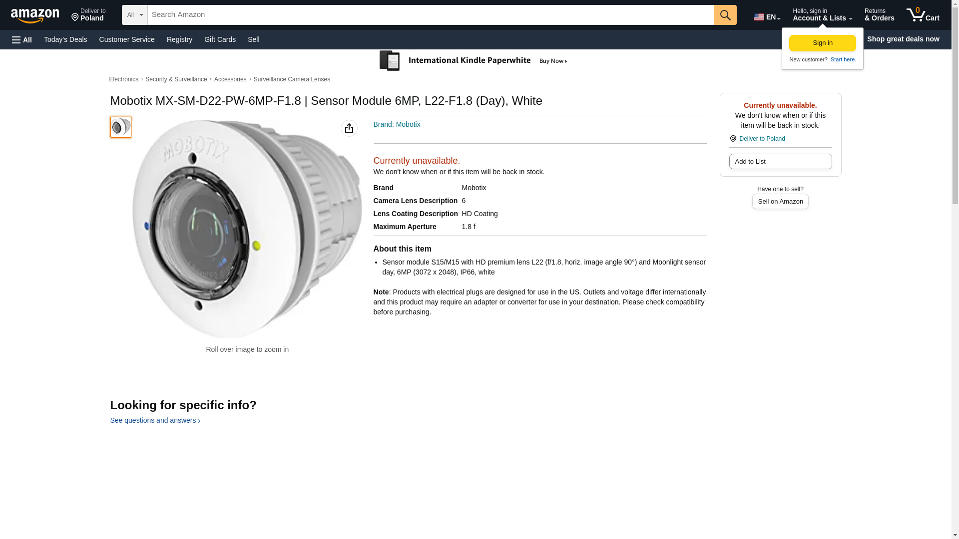 | Part number | MX-SM-D22-PW-6MP-F1.8 |