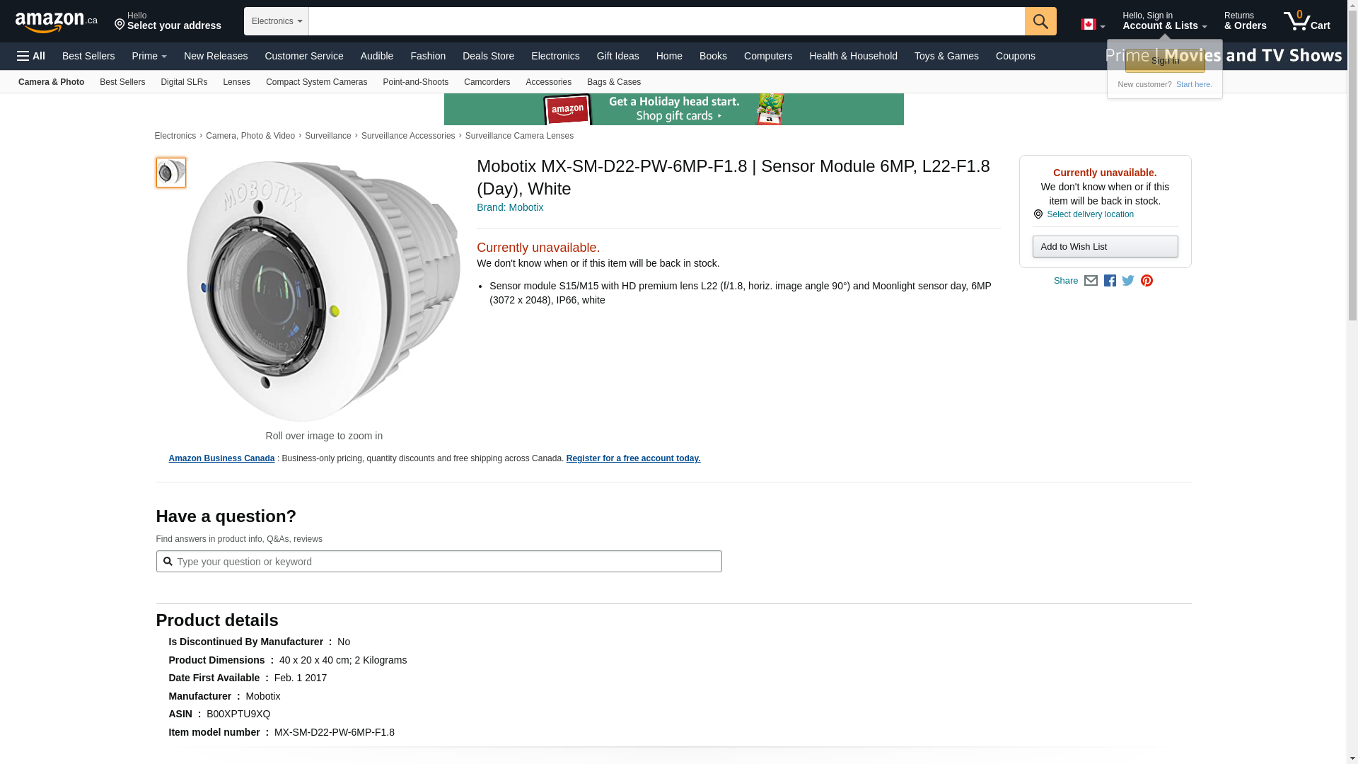 | MX-SM-D22-PW-6MP-F1.8 | 1 | -2 | 1 | 1 @ $198.00 | |