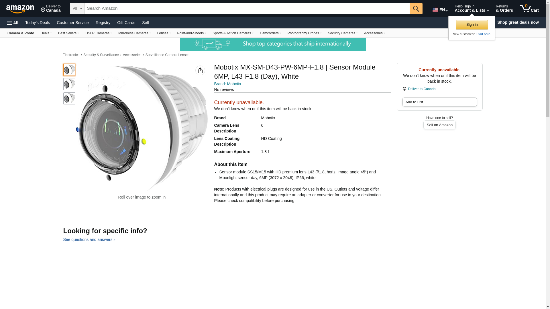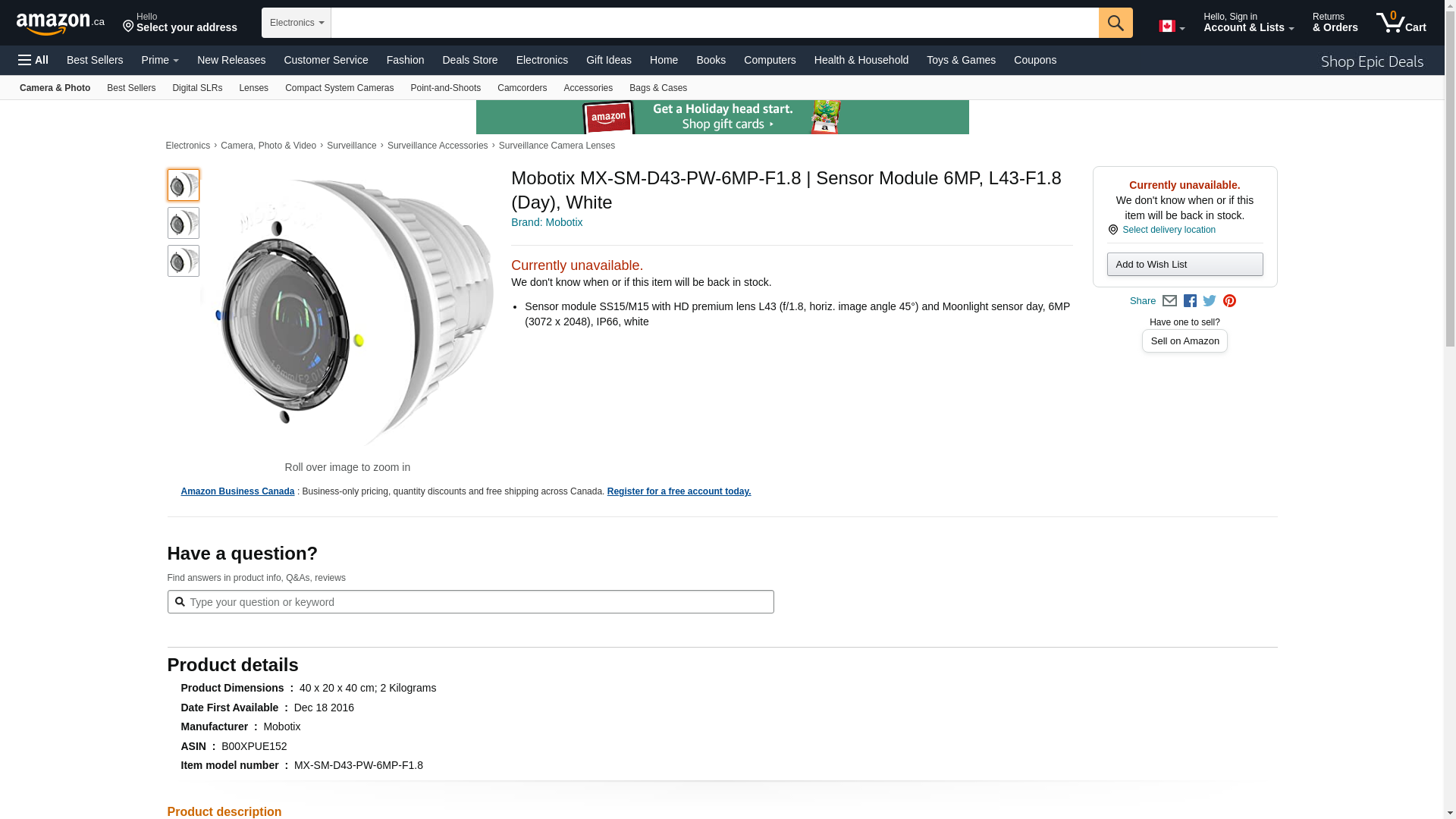 | MX-SM-D43-PW-6MP-F1.8 | 1 | -2 | 1 | 1 @ $198.00 | |