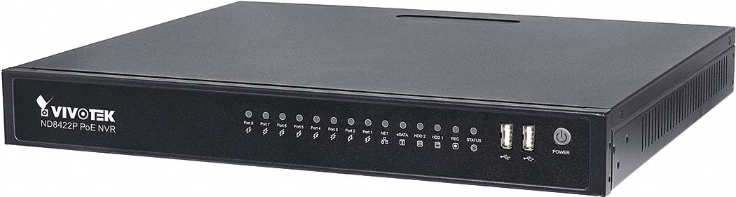 VIVOTEK | ND8422P-2TB Network Video Recorder, Embedded, Plug and Play, H.264/MJPEG, 1080p/720p Resolution, 96 Mbps Record Throughput, 2 GB RAM, 56 Volt DC, 2.32 Ampere, 120 Watt, 2 TB, RAID-0/1