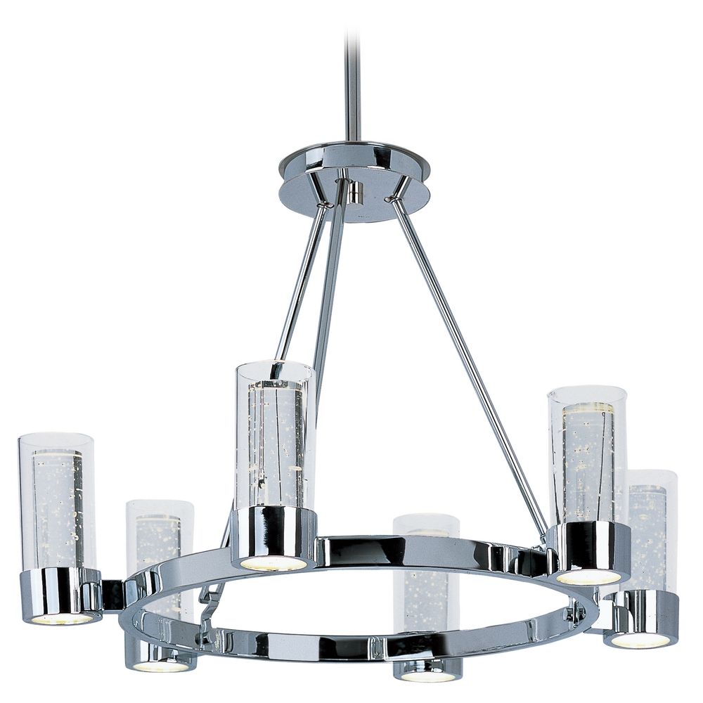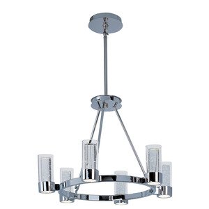 Maxim 20907CLPC Sync Clear & Bubble Glass Cylinder Round LED Chandelier, 6-Light 54 Total Watts, 18"H x 27"W, Polished Chrome