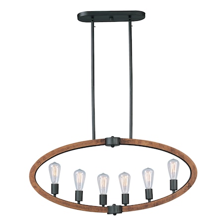 Maxim 20913APAR/BUI Bodega Bay Rustic Oval Ring of Ash Wood Linear Pendant Ceiling Lighting, 6-Light 360 Watts, 17"H x 5"W X 36"L, Anthracite