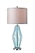 - TEAL GLASS BASE: This tall table lamp’s teal glass base is transparent and glossy, reflecting the light and giving an overall airy effect while keeping its blue hue.