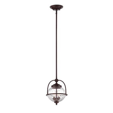 Nautical-inspired lantern style looks super stylish with the Savoy House Banbury 2-light pendant. The clear ribbed glass orb is supported by arms that add hints of industrial appeal. Finished in English bronze with gold. Glass Clear Ribbed Glass Base Item Number 7-460-2 Style Transitional Fixture Finish English Bronze w/ Gold Fixture Height 43.5 inches Fixture Width 9.25 inches
