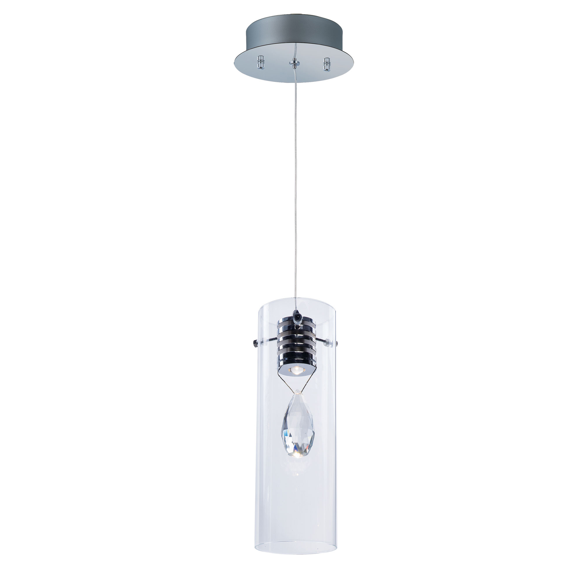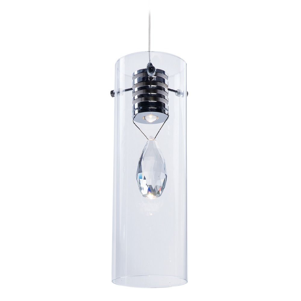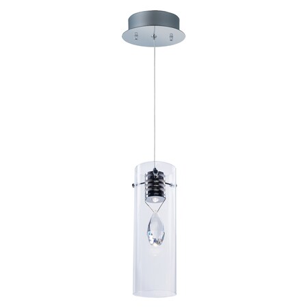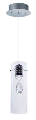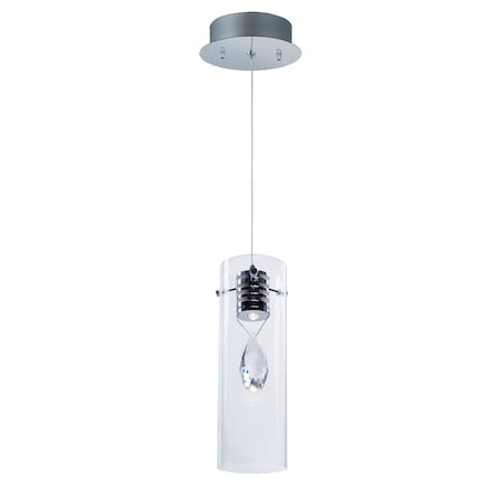 ET2 E21111-18PC Solitaire Almond Modern Crystal & Clear Glass Cylinder Mini LED Pendant Ceiling Lighting, 1-Light LED 3 Watt, 12" H x 4" W, Polished Chrome