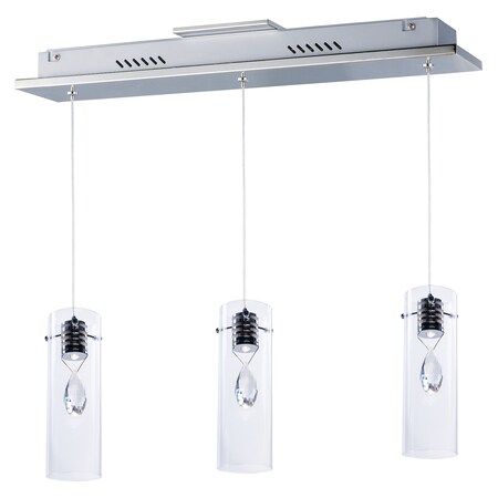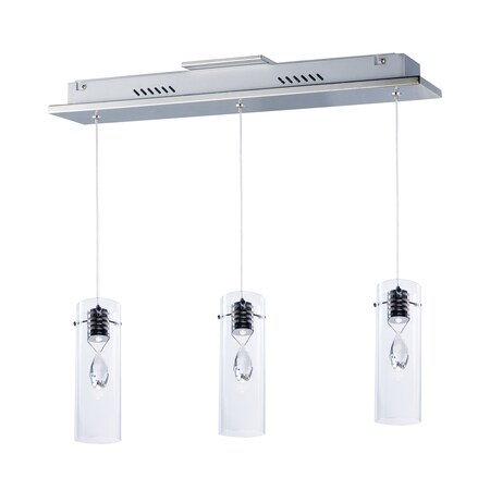 ET2 E21113-18PC Solitaire Modern Crystal Mini Cylinder LED Linear Pendant Ceiling Lighting, 3-Light 9 Watts, 12"H x 4"W x 22"L, Polished Chrome