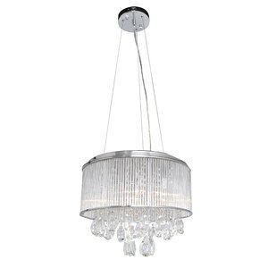 - DETAILS: Constructed of Steel with Polished Chrome Finish and Clear Glass Rods Shade