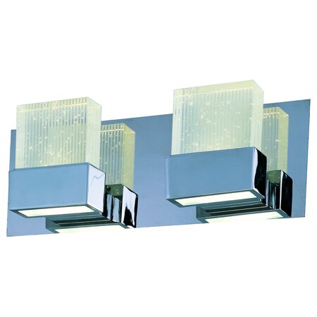 ET2 E22752-89PC Fizz III ADA Compliant Rectangular Bubble Glass Cube LED Bath Vanity Wall Mount, 4-Light 6 Watts, 6"H x 15"W, Chrome