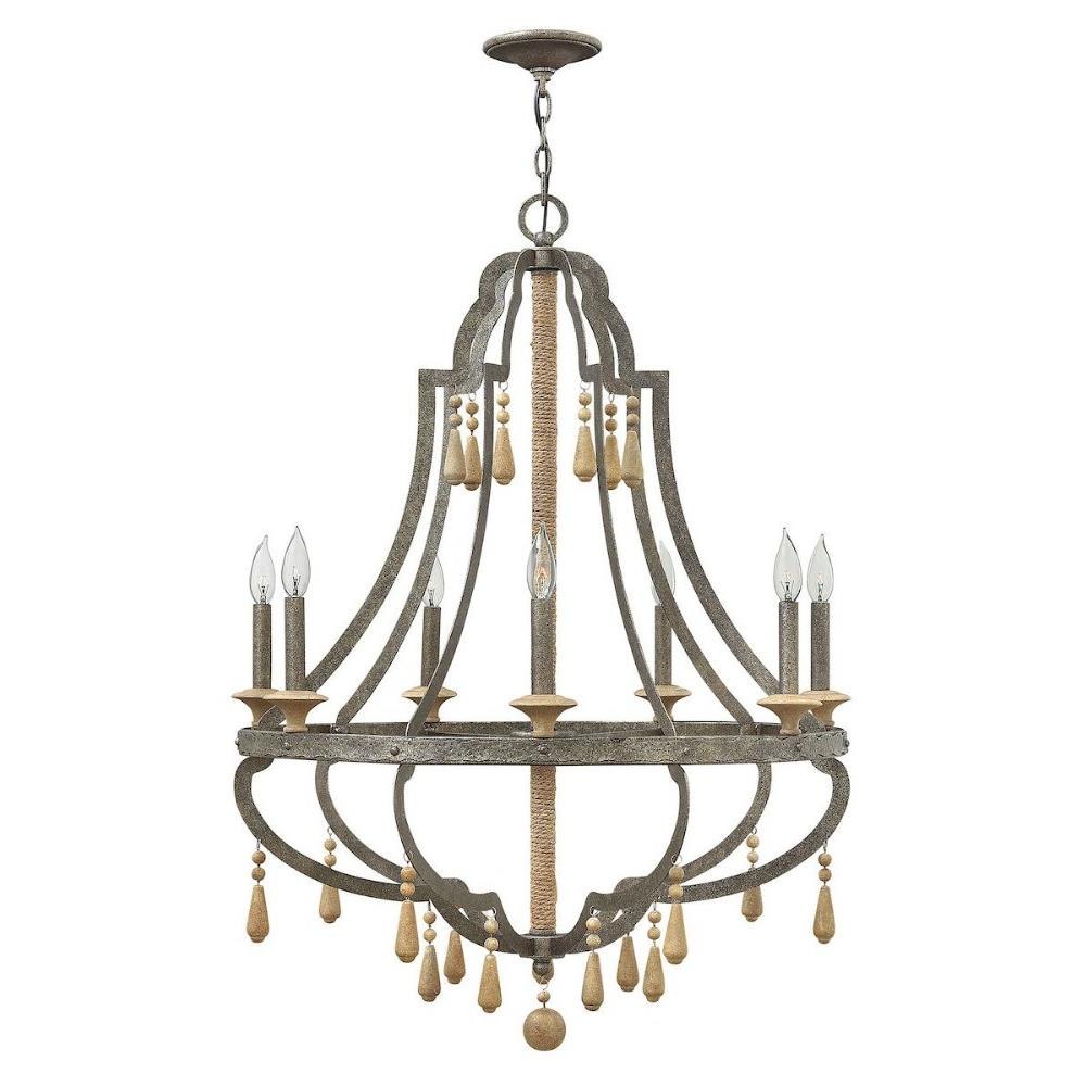 Cordoba is a feast of rich textures and organic details creating a sense of bohemian sophistication. The center column is hand-wrapped with lightly aged rope while hand-turned pendalogues and bobeches of sun-bleached wood add a natural elegance. Mounting Direction: Up / Canopy Included: TRUE / Canopy Diameter: 5.50.