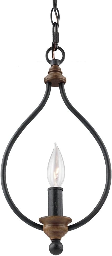 Sea Gull Lighting P1341DWZ/WO Hartsville Mini-Pendant Hanging Modern Fixture, One - Light, Dark Weathered Zinc/Weathered Oak