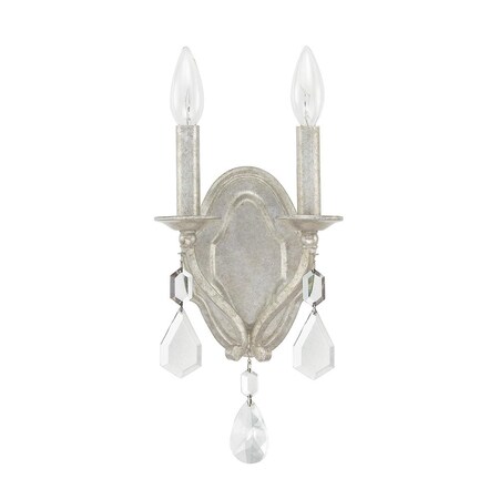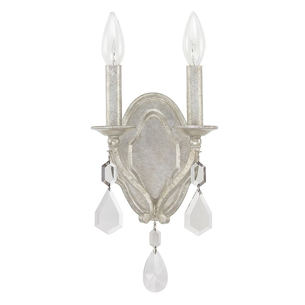 Capital Lighting 1617AS-CR Blakely K9 Crystal Wall Sconce, 2-Light 120 Total Watts, 13" H x 7" W, Antique Silver