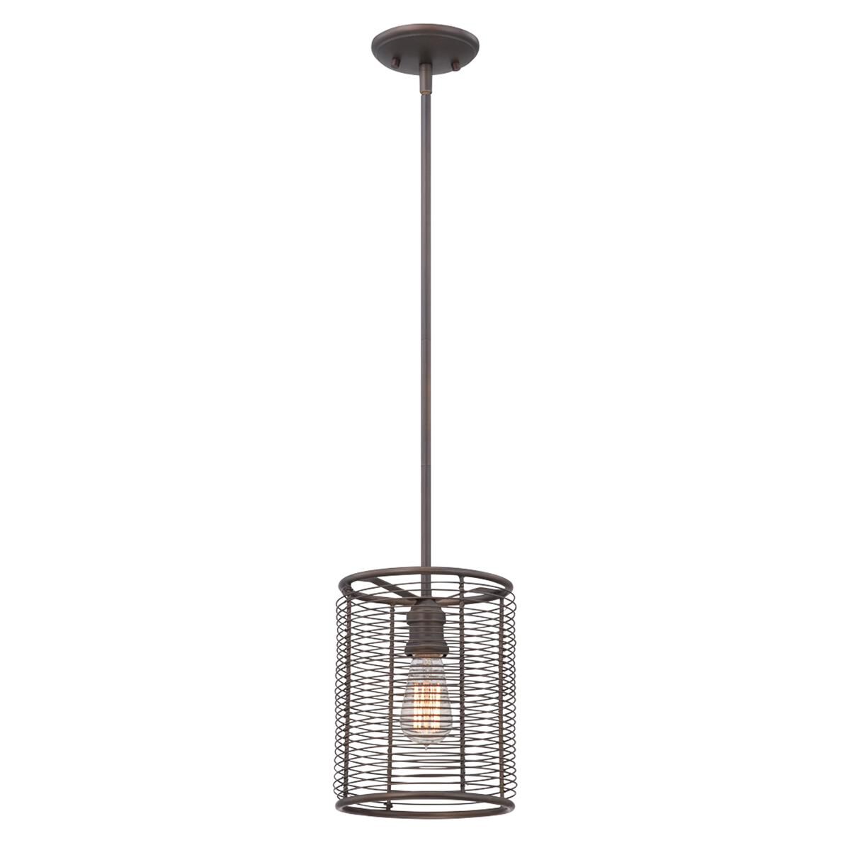 Eurofase 28062-011 Terra Industrial Metal Mesh Mini Drum Pendant Light, 1-Light 60 Watt, 10" H x 8" Dia, Bronze