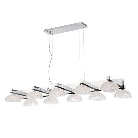 Eurofase 28139-010 Long Caramico Hand Crafted Drizzled Glass Chandelier with 10 G9 Light Bulbs, X-Large, 52.75" x 21" x 5.75", Chrome Finish