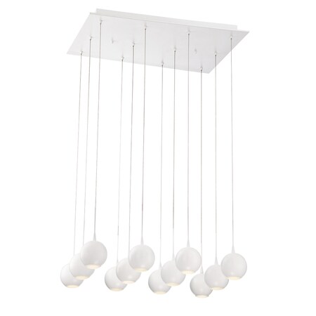 Eurofase 28171-010 Patron Floating Metal Spheres Clustered Array LED Linear Pendant Light, 12-Light 26 Total Watts, 4"H x 19"W x 26"L, Matte White