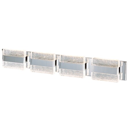 Blocks of piastra style Iceberg glass sparkle and shimmer from the high powered LEDs concealed inside Polished Chrome metal supports. Not only Is useful light directed down, additional light is cast indirectly upwards and into the room for even and soft illumination.