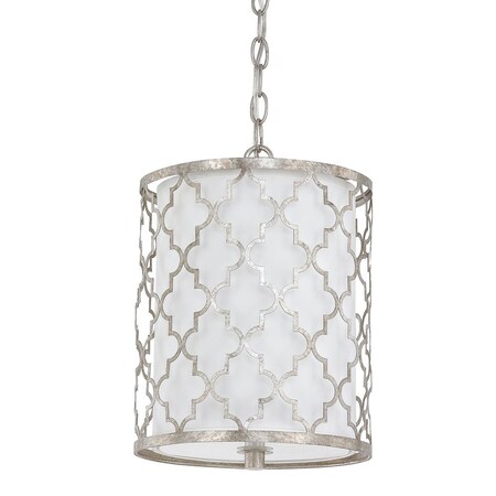 Capital Lighting 4544AS-579 Ellis White Fabric & Frosted Glass Double Shade Drum Pendant, 2-Light 120 Total Watts, 14"H x 10"W, Antique Silver