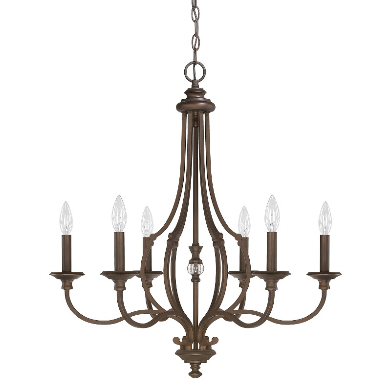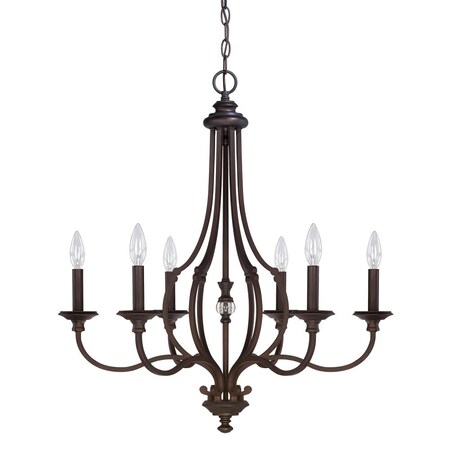 Capital Lighting 4706BB-000 Leigh Traditional Candle Style with K9 Crystal Chandelier, 6-Light 360 Total Watts, 30" H x 26" W, Burnished Bronze