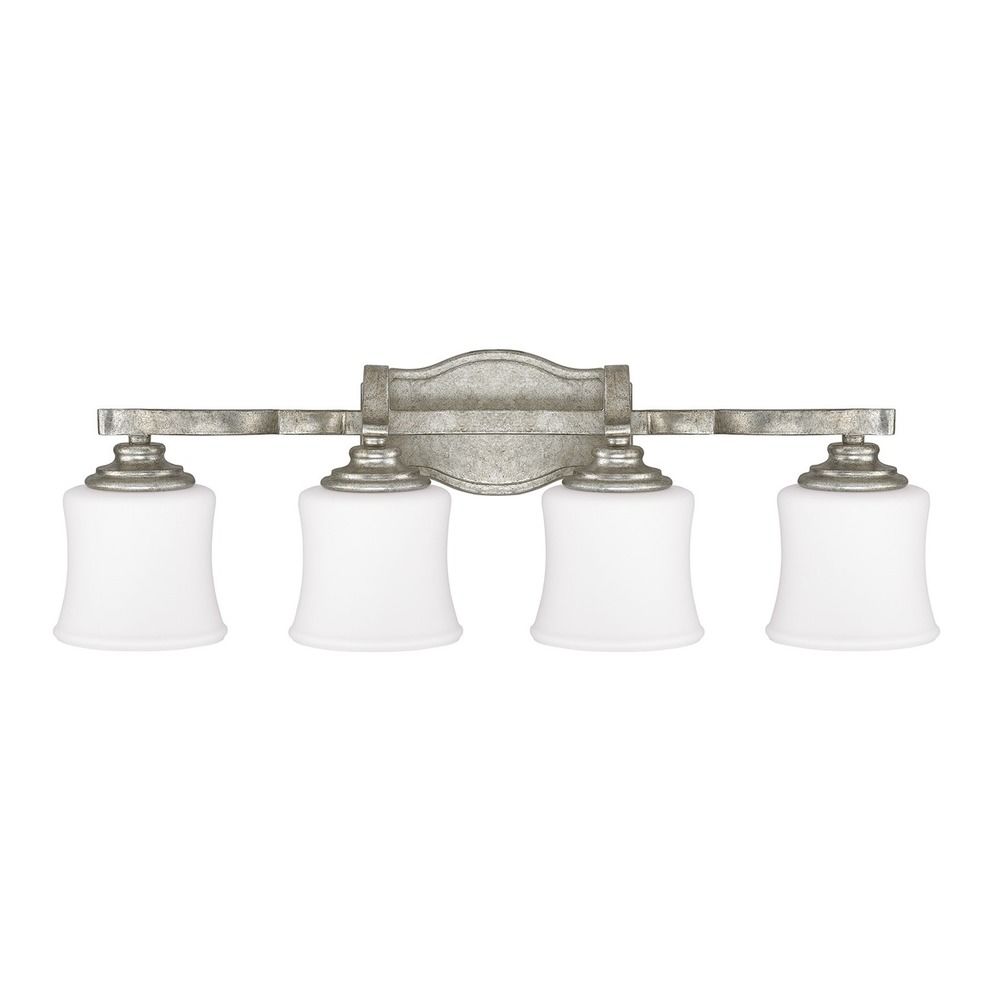 Capital Lighting 8554AS-299 Blair Soft White Glass Bath Vanity Wall Mount, 4-Light 400 Total Watts, 9" H x 27" W, Antique Silver