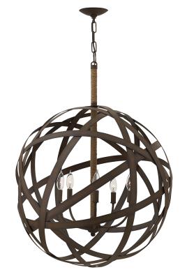 Carson pairs a hint of industrial sophistication and repurposed craftsmanship with its bold overlapping metal ribbons. The hand-crafted pendants in an Iron Rust finish are suspended from an aged rope column for a subtle touch of reclaimed charm.