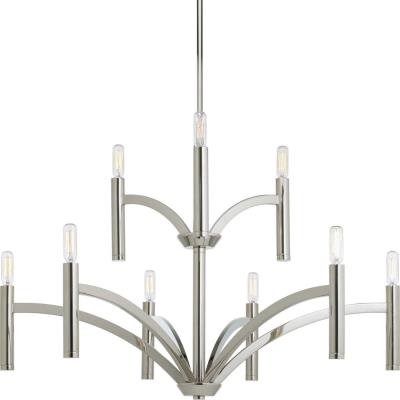 Progress Lighting Draper Collection 9-Light Luxe Chandelier Light Polished Nickel