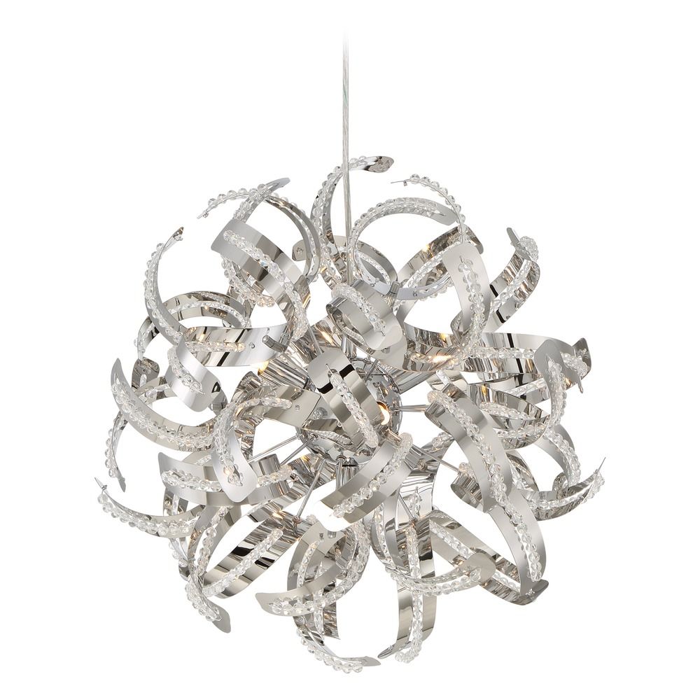 Quoizel RBN2817CRC Ribbons Curved Metal Pendant Ceiling Lighting, 5-Light, Xenon 200 Watts, Crystal Chrome (17" H x 17" W)