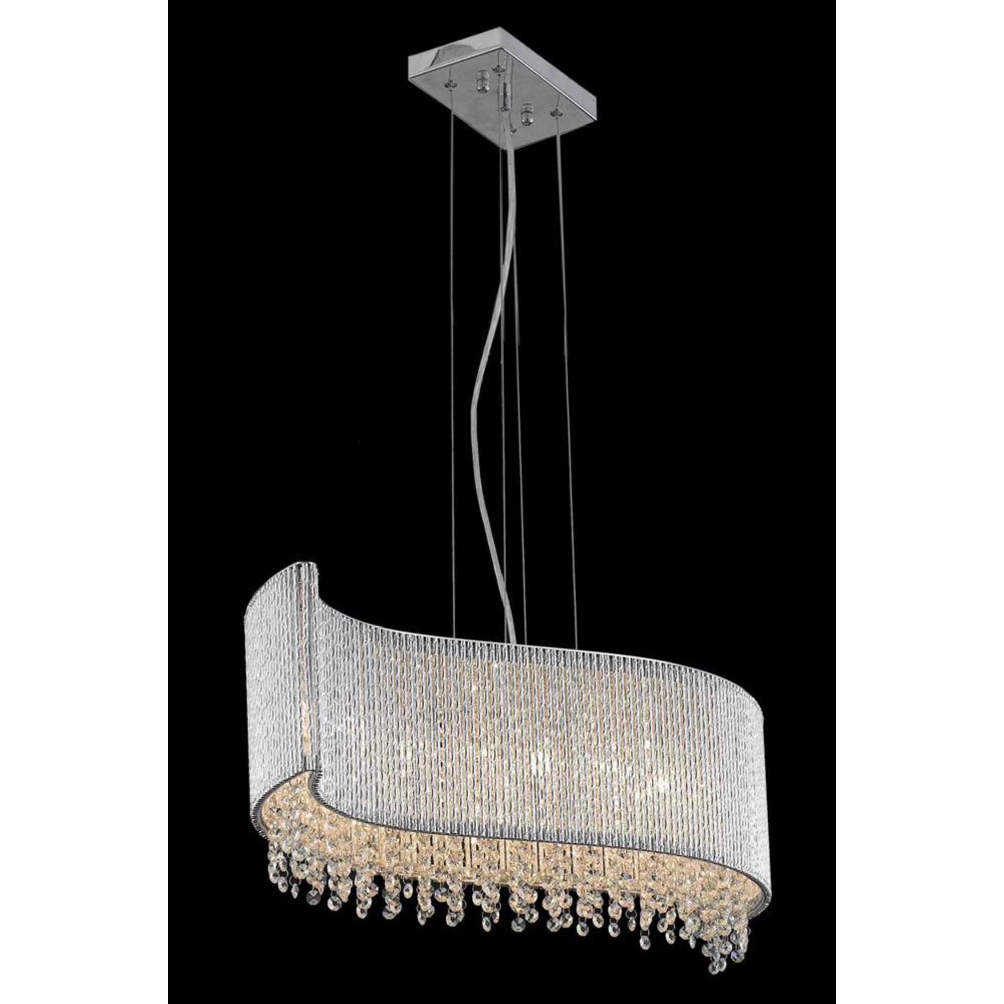 Waves of glimmering light will leave an impression of dynamic motion in your bedroom, dining room, or entryway with the Influx collection of hanging fixtures. Multifaceted royal-cut clear crystal beads dance within a glistening chrome silhouette of metallic twists. Be swept you off your feet by this contemporary lighting fixture that inspires a tide of brilliant breathtaking wonder.