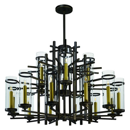 Maxim Lighting 43749CLGB Midtown - 47.25 Inch 72W 18 LED 2-Tier Pendant, Gold Bronze Finish with Clear Glass