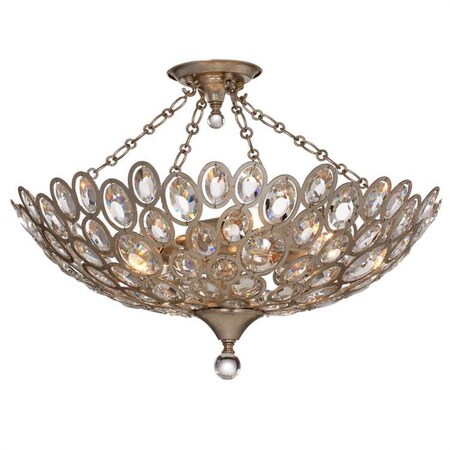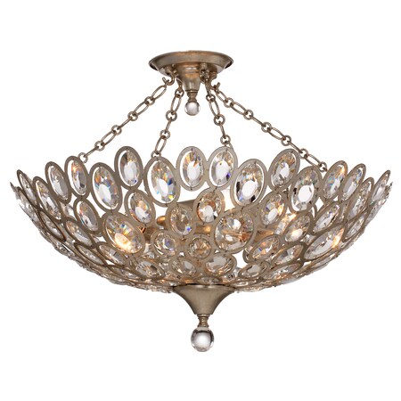 This 5 light Flush/Semi Flush from the Sterling collection by Crystorama will enhance your home with a perfect mix of form and function. The features include a Distressed Twilight finish applied by experts. Product Features Include: Brand: Crystorama, Collection: Sterling, SKU: 7587-DT_CEILING, UPC: 633779043031, Category: Semi-Flush Mount, Finish: Distressed Twilight, Crystal: Hand Cut Crystal, Material: Steel, Length: 24.25 in., Width: 24.25 in., Height: 14.00 in., Max Height: 14.00 in., Extension/Depth: 24.25 in., Backplate/Canopy Width: 6.00 in., Backplate/Canopy Thickness: 2.25 in., Weight: 24.00 lb., Included Chain/Rods/Cord: Chain: 72", Included Lead Wire: 144.00, Warranty: 1 year from shipment date. Terms and Conditions that apply., Bulbs Included: No, Primary Bulb(s): 5 x 60.00 watts E26 Medium E26 Medium, Voltage: 120, Safety Rating: UL, CUL, CSA Damp, Title 20 Approved