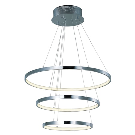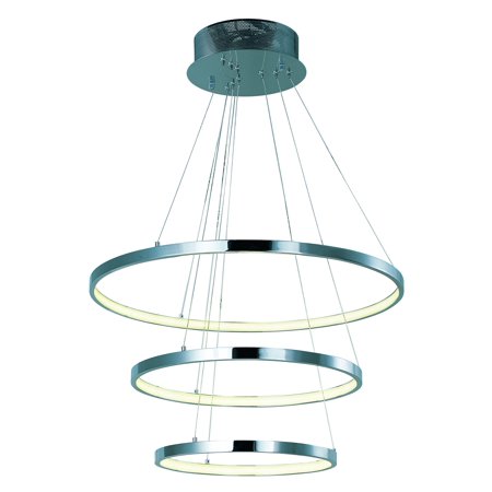 ET2 E22715-PC Hoops 24" Floating Aluminum & Acrylic Rings Round LED Pendant Ceiling Lighting, 3-Light 31 Total Watts, Polished Chrome