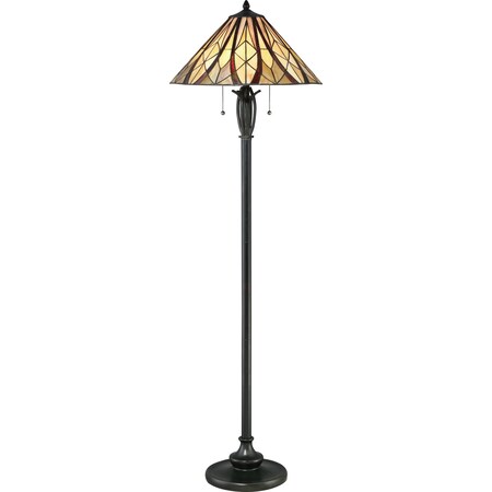 Quoizel TFVY9359VA Victory Tiffany Floor Lamp, 2-Light, 200 Watts, Valiant Bronze (59" H x 19" W)