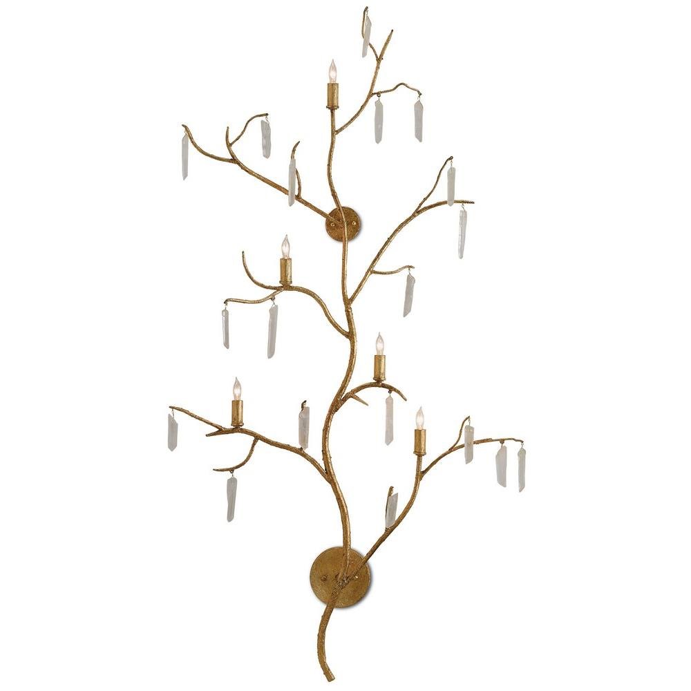 Currey and Company 5000-0014 Forest - Five Light Wall Sconce, Washed Lucerne Gold/Natural Finish