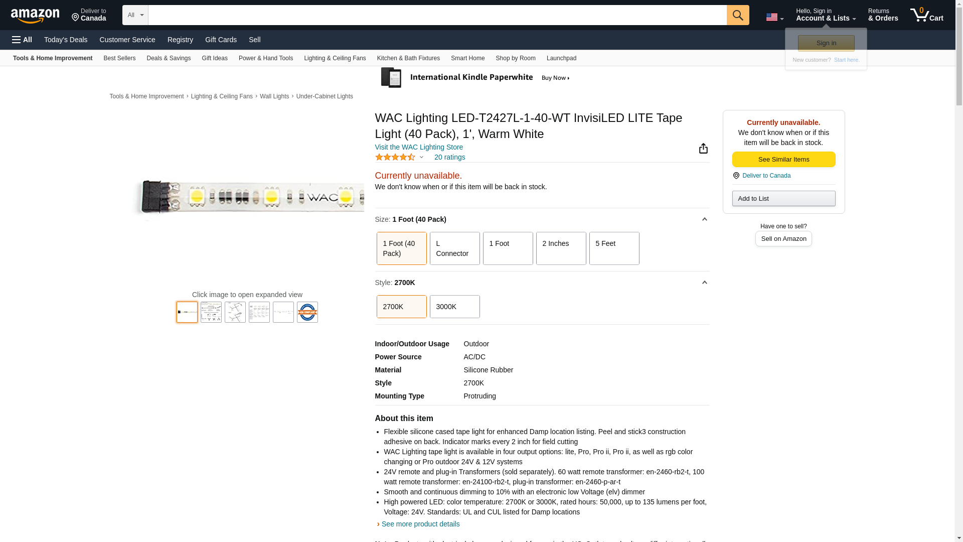 WAC Lighting LED-T2427L-1-40-WT InvisiLED LITE Tape Light (40 Pack), 1', Warm White
