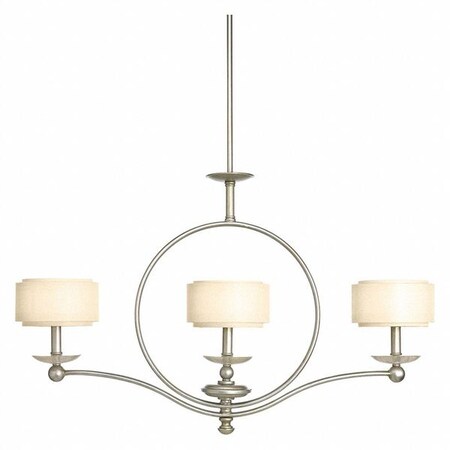 Three-light linear chandelier. Bulbs Included: FALSE Product Weight: 14 Product Color: Grey Lamp Wattage: 60 Glass: Toasted Weight: 14 Notes: (2) 6 in., (1) 12 in. and (2) 15 in. stems included; Includes 90-degree hang straight for sloped ceilings