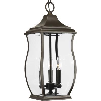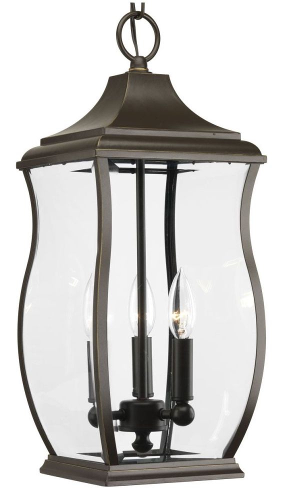 Progress Lighting Township Collection 3-Light Clear Beveled Glass New Traditional Outdoor Hanging Lantern Light Oil Rubbed Bronze