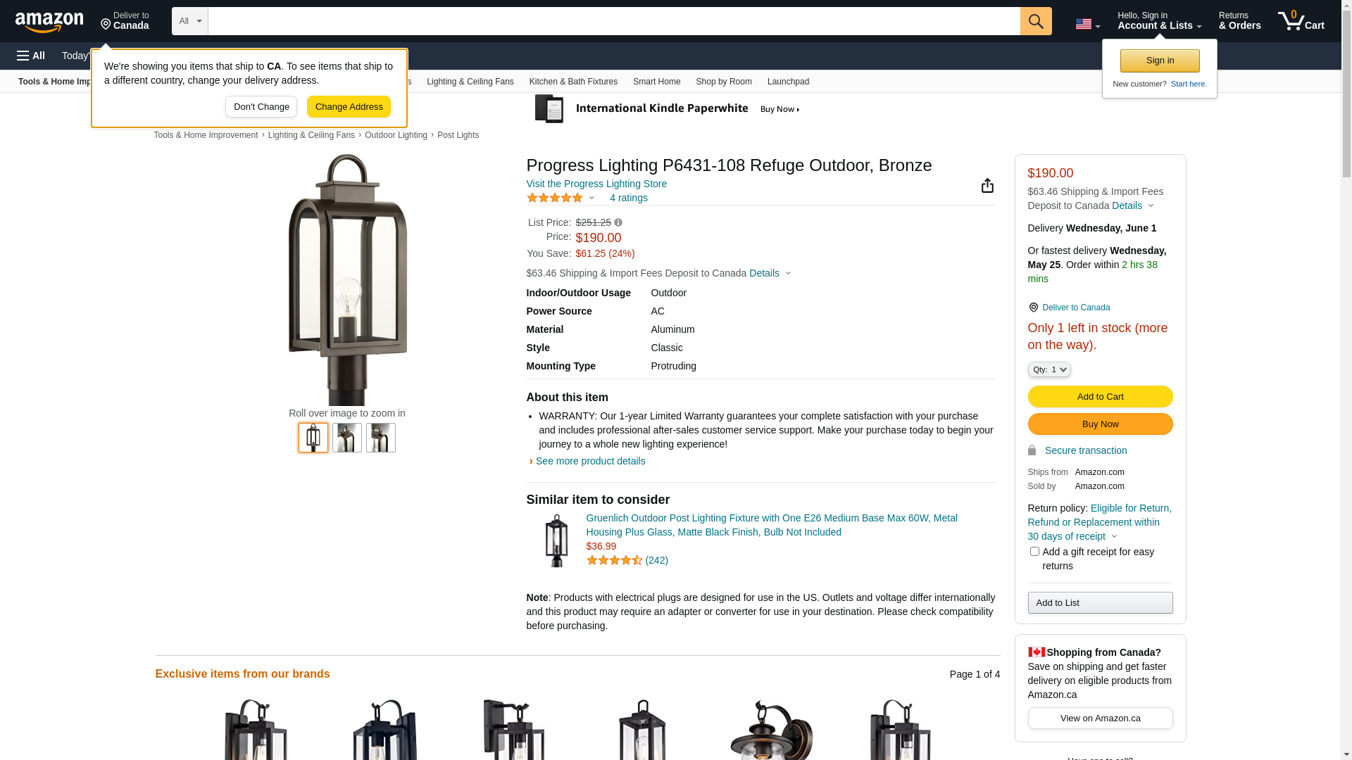 | brecherslighting.com | P6431-108 | 1 | 103 | 1 | 1 @ $192.70 |