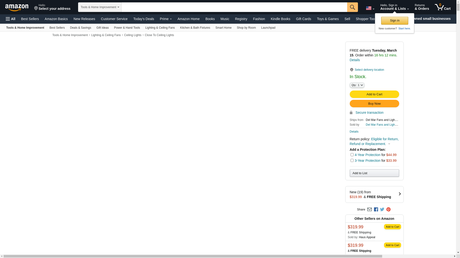 | brecherslighting.com | TRG1712BN | 1 | 25 | 1 | 1 @ $319.99 |